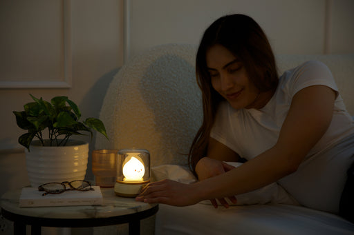 Cute night light. USB-C charging. Three brightness settings for warm white light. Easy pinch to turn on/off. Also different color modes and 30/60min timer possible if needed.
