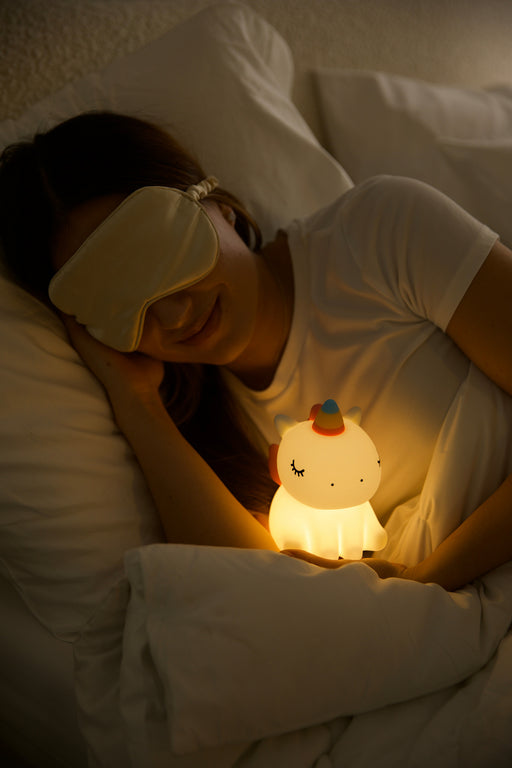 Make bedtime a little more magical with the Sitting Unicorn Silicone Lamp—a soft, squeezable night light that glows with a warm LED light and featu...
